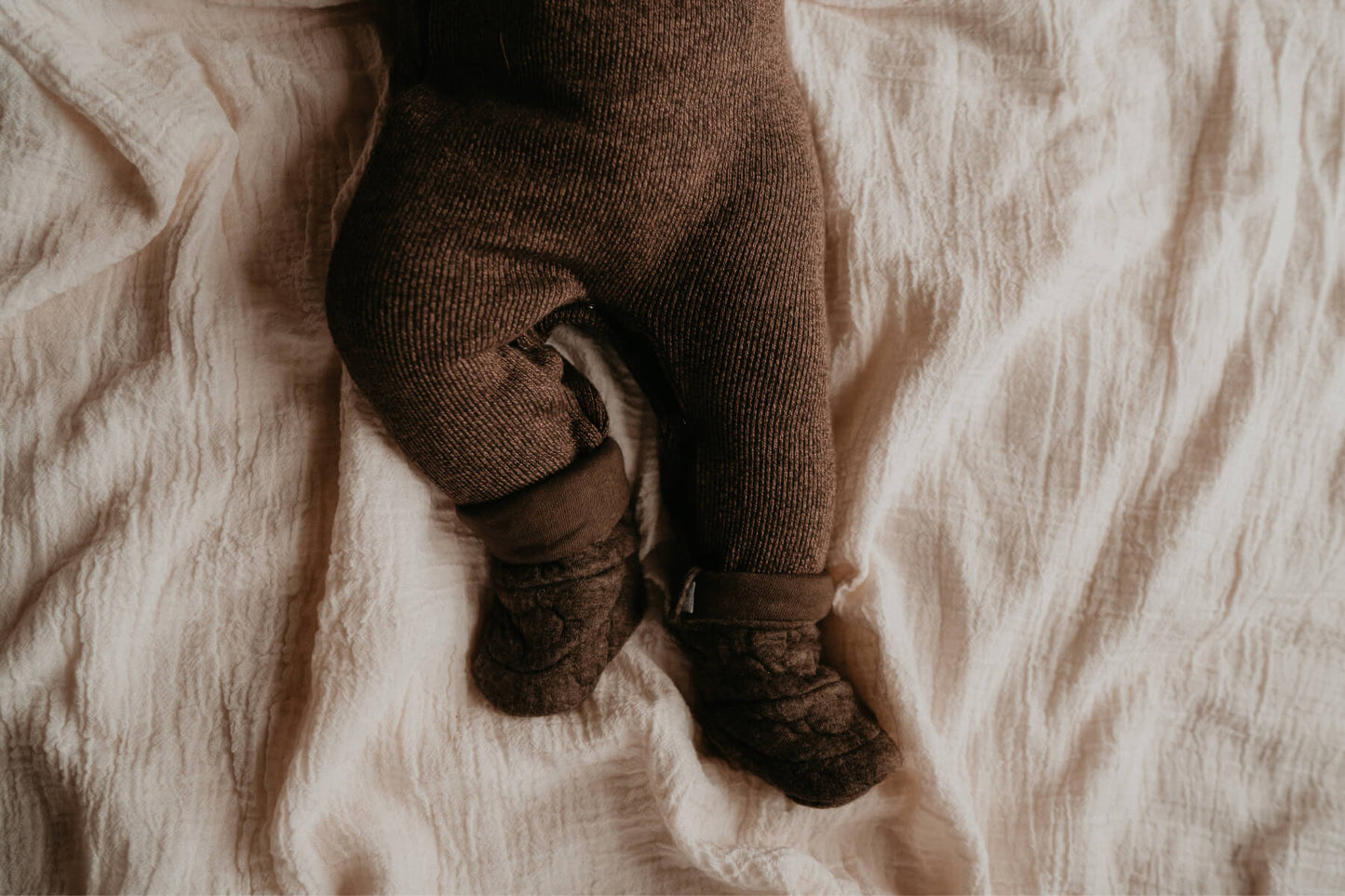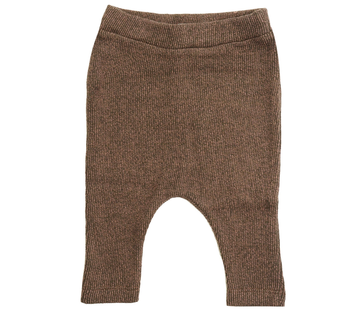 Baggy broekje van heerlijk warm en zacht biologisch katoen en een fijne rib in gemeleerde bruine kleur. Het broekje heeft een relaxte fit met elastische band.
