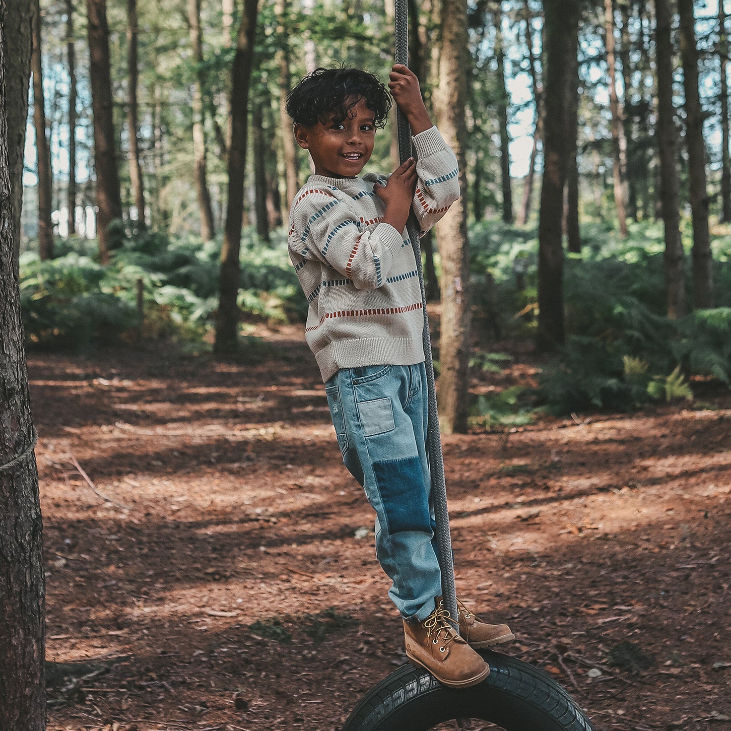 De Denim Patchwork jeans is een speelse en trendy toevoeging aan de kledingkast van uw kindje. De broek is verkrijgbaar in maat 98 tot en met 140. Deze unieke jeans is gemaakt van 100% katoen, wat zorgt voor comfort. De jeans heeft een tapered fit en is voorzien van diverse patches die een leuk en nieuw effect creëren. Dit model is vergelijkbaar met de populaire Floyd broek, maar biedt een verfrissende twist met de patchwork details. Met zijn blauwe kleur en stoere denim print is de broek perfect voor dagelijkse avonturen en speelse activiteiten. Combineer de Denim Patchwork Jeans met de Stripe Terry Relaxed Granddad Longsleeve of een van de stoere Knit Sweater van Your Wishes om de outfit compleet te maken. Heeft u de Denim Patchwork Jeans al aan uw winkelmandje toegevoegd?