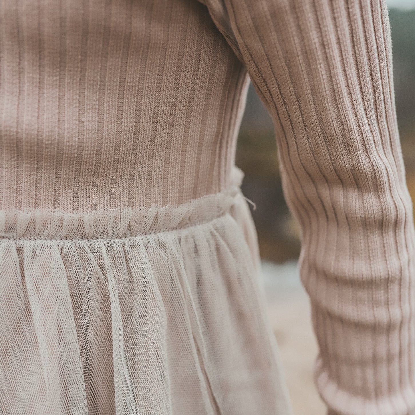 Your Wishes Rib Knit Tule Dress - Jurk - Beige 6