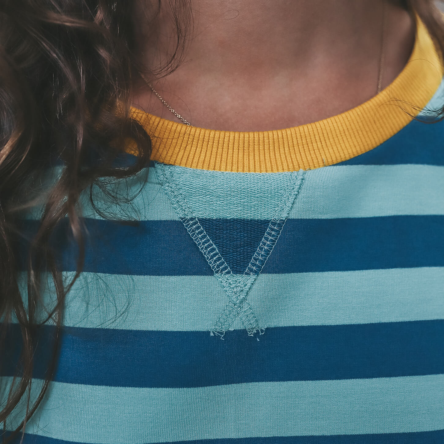 You & Your Little One! Met deze prachtige truien van Your Wishes uit de Mommy & Me Collectie matcht u nu perfect met uw kleintje! De Sweaters zijn gemaakt van french knit katoen en voelen heerlijk zacht en soepel aan! Het oversized model zorgt voor een stoere look en de turquoise en aqua strepen, afgewerkt met gele boorden geven deze trui een unieke uitstraling. Lekker twinnen met uw kindje? Combineer deze stoere trui dan met de Stripe French Knit Sweater Corsair