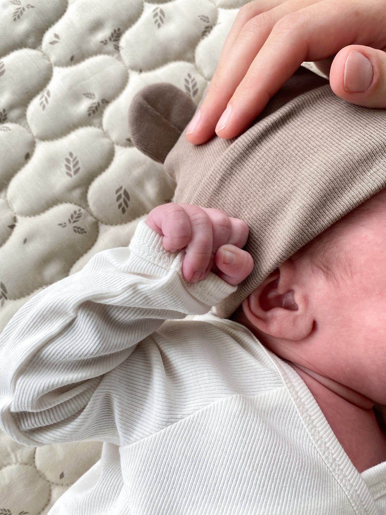 Lief babymutsje in heerlijk zachte en stretchy ribkwaliteit. Het mutsje heeft een omgeslagen rand en schattige teddybeeroortjes bovenop. Dit mutsje is gemaakt van zacht biologisch katoen, uitgewerkt in fijne ribstof met elastaan. Beschikbaar in de maten 44 t/m 62 en is daardoor geschikt voor hele kleine baby's. De bruine kleur maakt het neutraal en unisex. Fijn voor als het geslacht van de baby nog niet bekend is.