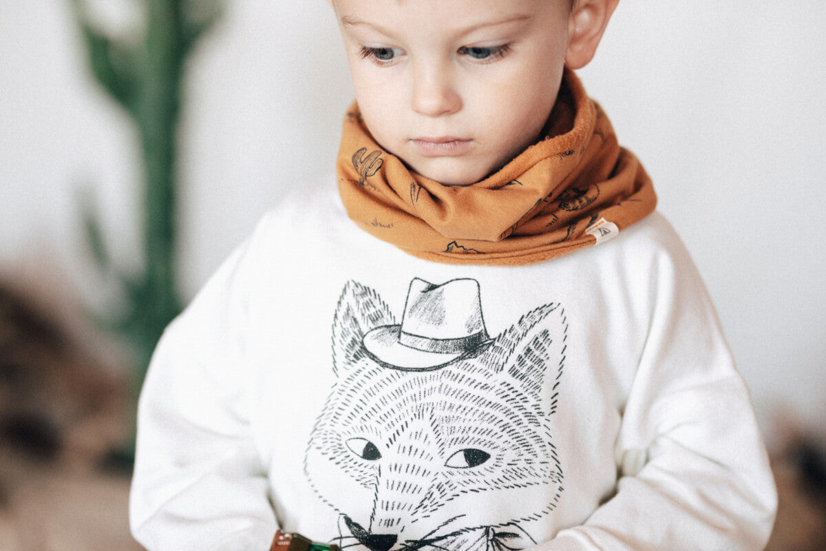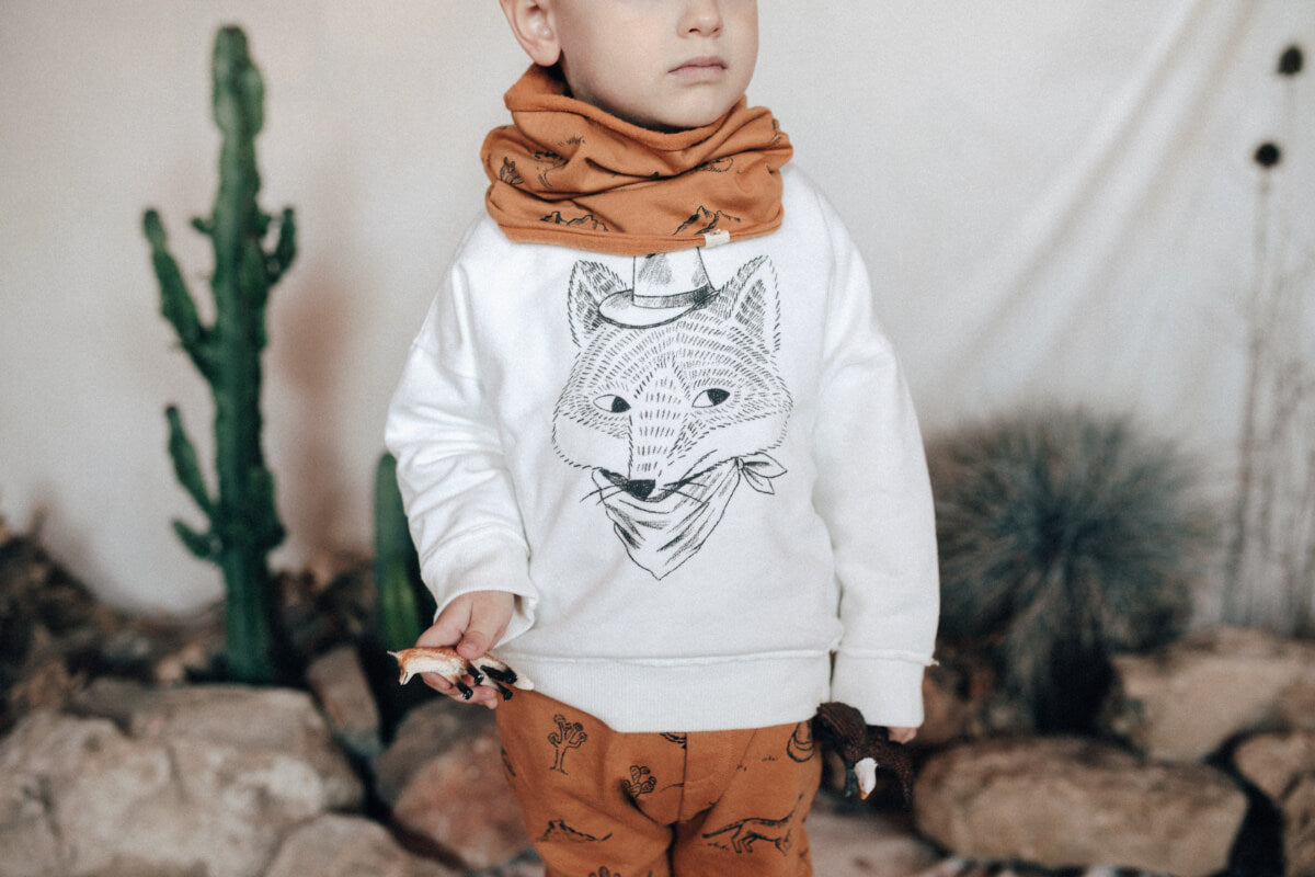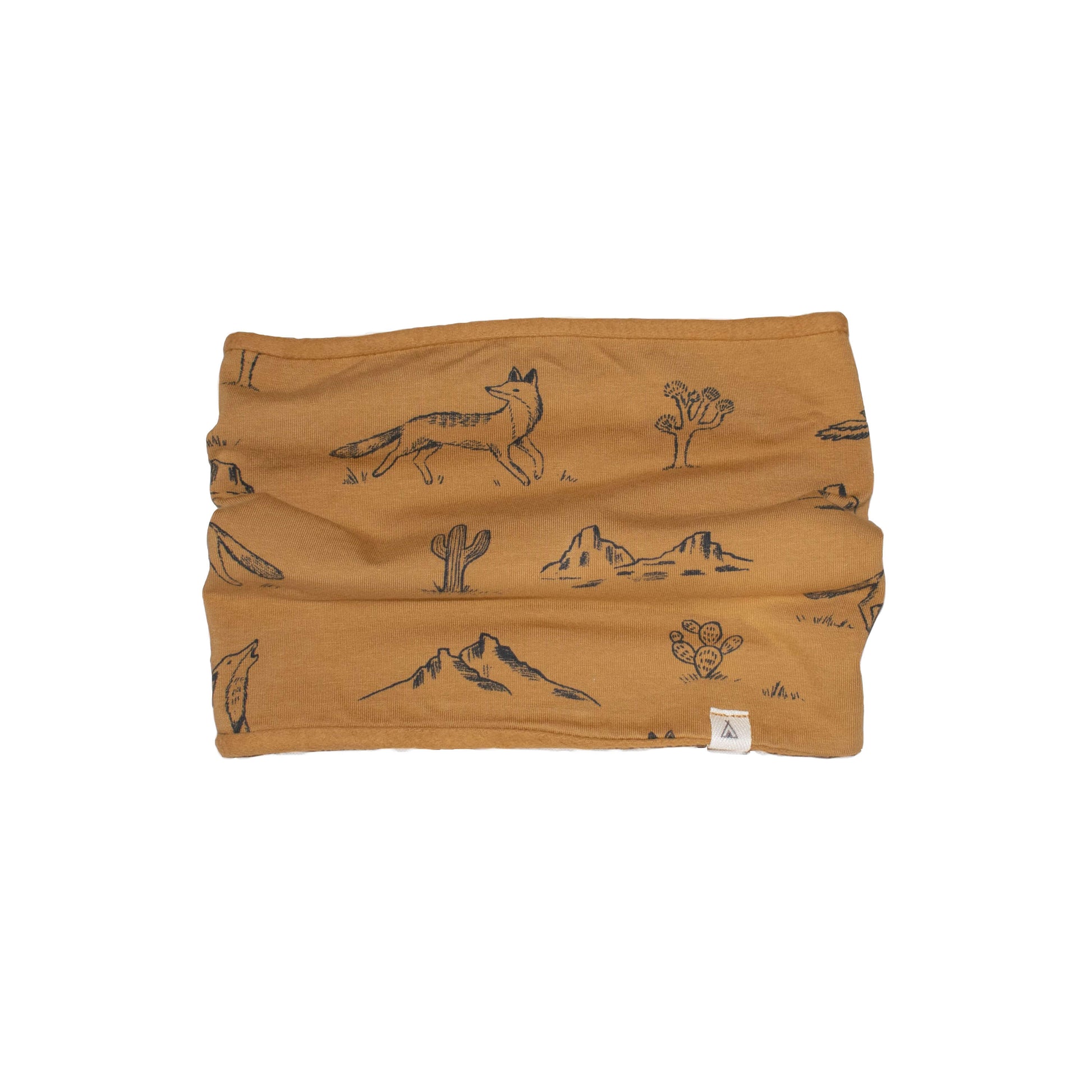 Col sjaal van heerlijk zacht katoen met een warme pluche binnenstof met speelse woestijn print.