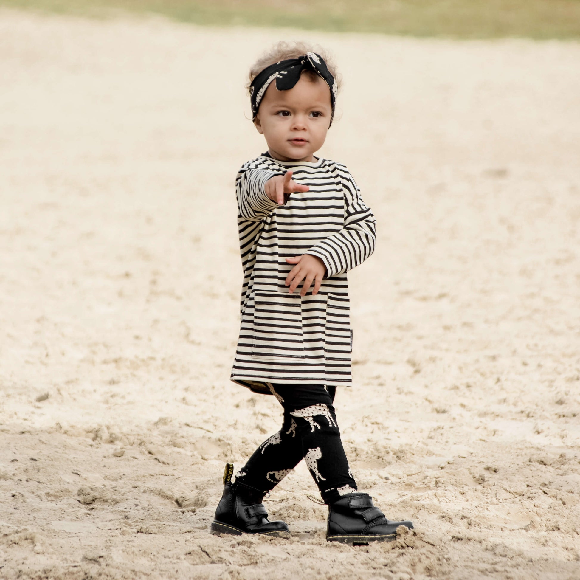 Een Baggy broekje te stoer? Ga dan eens voor een legging! Deze valt strakker om de beentjes en is voor stoere jongens super leuk te combineren met een van onze Text Tees en voor meisjes met een jurkje.
