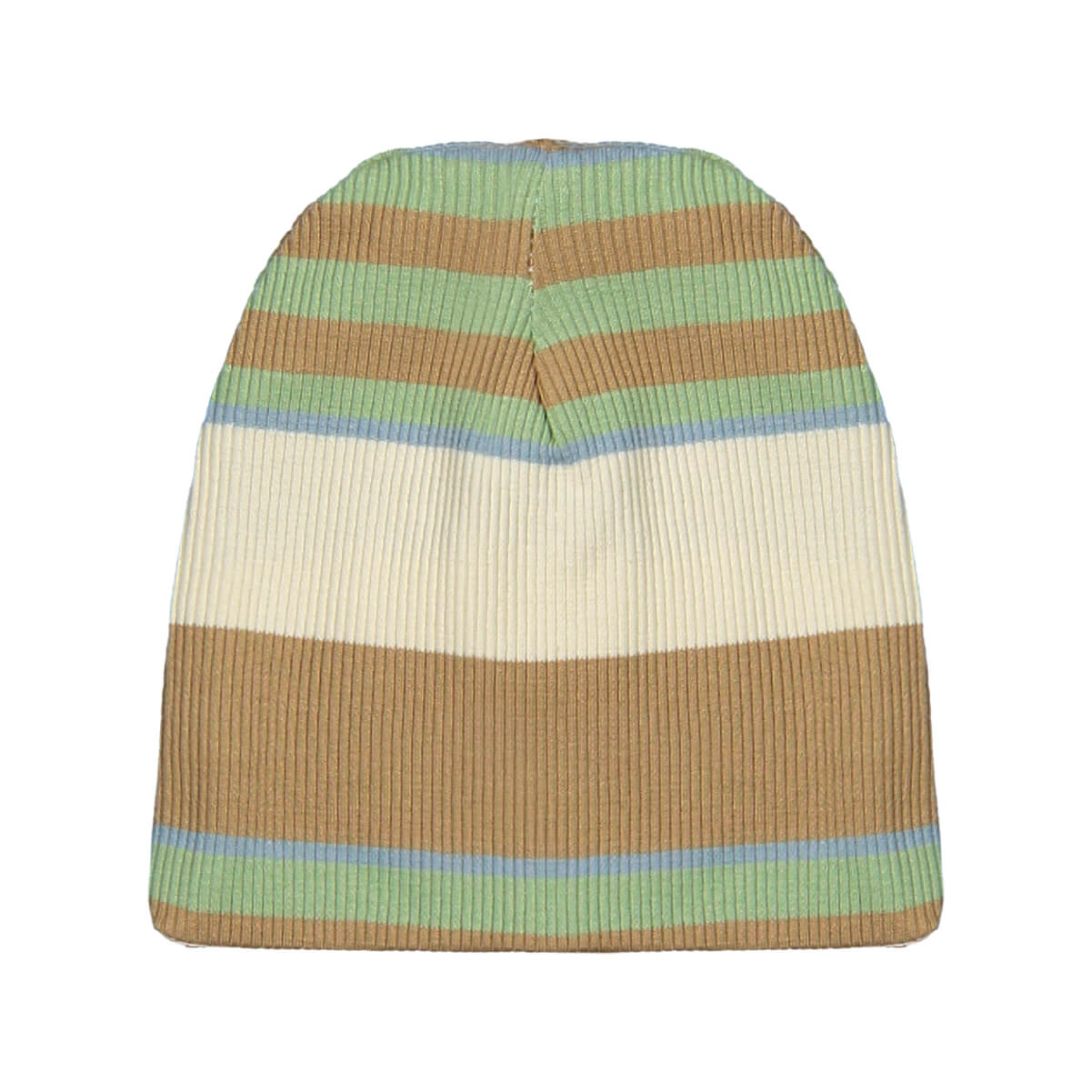 Fijn en zacht newborn mutsje van het merk Riffle Amsterdam. Gemaakt van 100% biologisch katoen uitgewerkt in een fijne rib is dit mutsje zeker geen overboden luxe. Het houd het hoofdje van uw pasgeboren spruit heerlijk warm wat erg belangrijk is vlak na de geboorte. Het mutsje heeft een gestreept patroon van verschillende kleuren zoals beige en groen en is een mooie match met bijvoorbeeld de Suit Sasha Rib Stripe Green en de Romper Luke Rib Stripe Green.