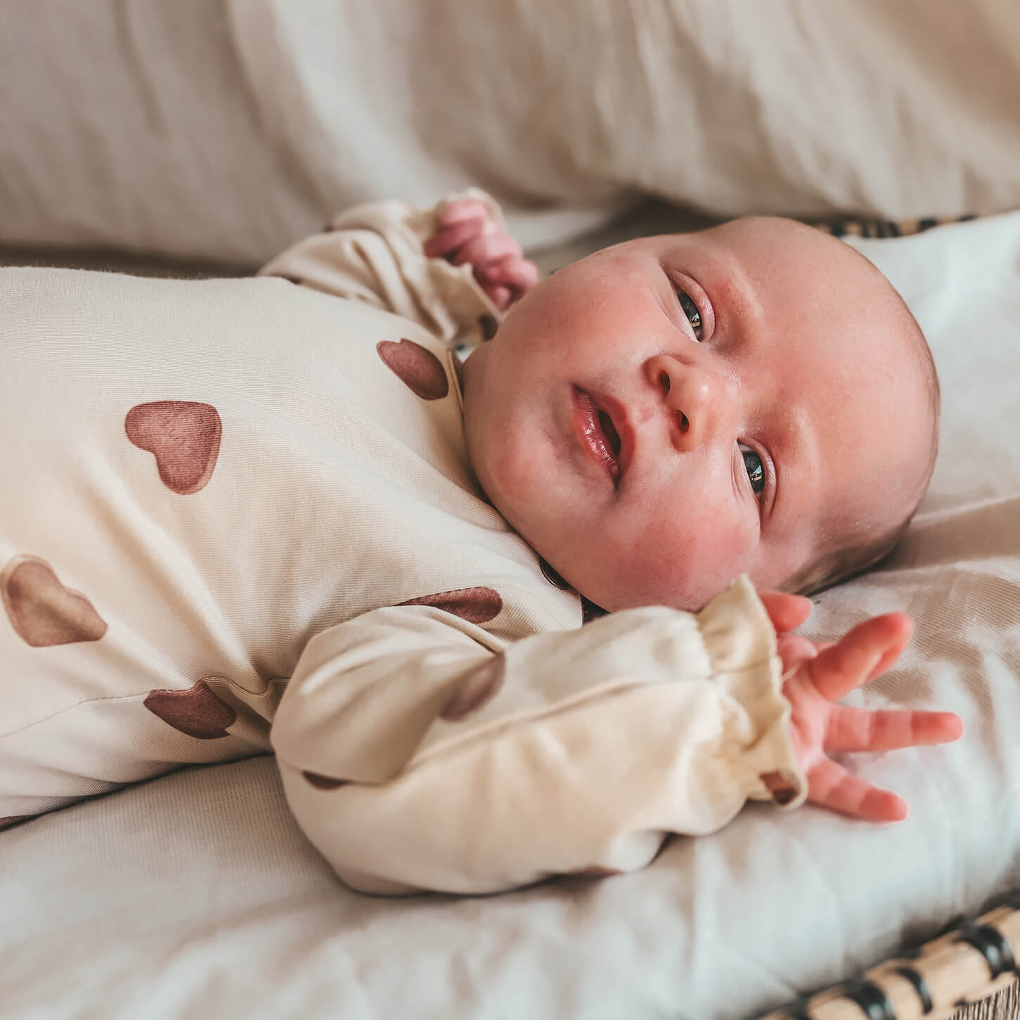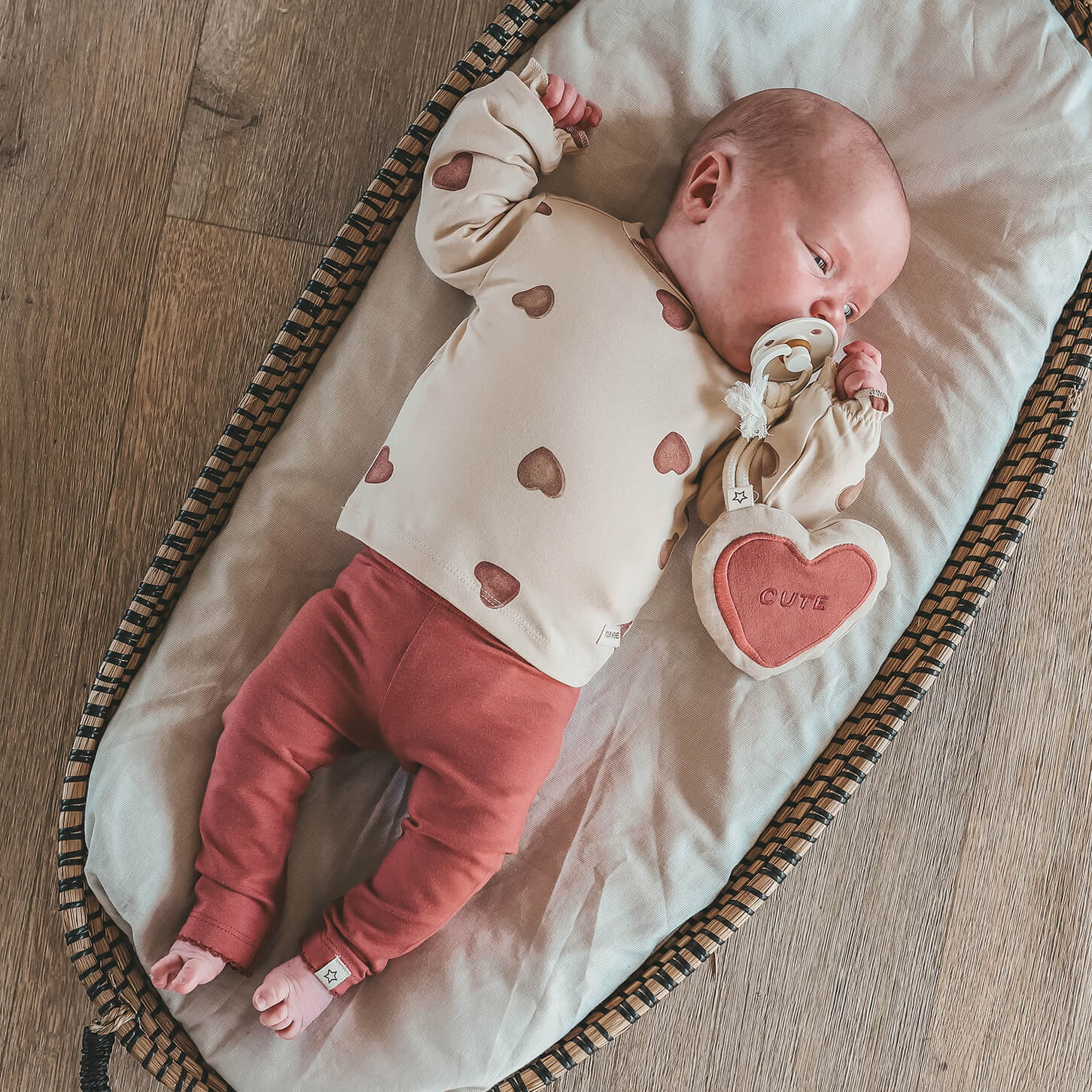 Dit zoete shirtje is zeker een musthave voor uw pasgeboren spruit! Het newborn shirtje van Your Wishes is verkrijgbaar in de maten 50 t/m 74 en is gemaakt van een mix van katoen, modal en elastaan wat extra zacht is voor de tere en nog gevoelige babyhuid. Verder heeft het shirtje een ecru kleurige achtergrond met in verschillende tinten roze een all-over snoephartjes print wat samen met de ruffles en elastiek aan de uiteinde van de mouwen het shirt een super schattige uitstraling geeft. De drukknoopjes in de hals maakt het gemakkelijker om aan- en uit te kleden. Voor een volledige outfit match je dit shirtje het mooist met de Solid Legging Withered Rose en de Quilted Jersey Cardigan.