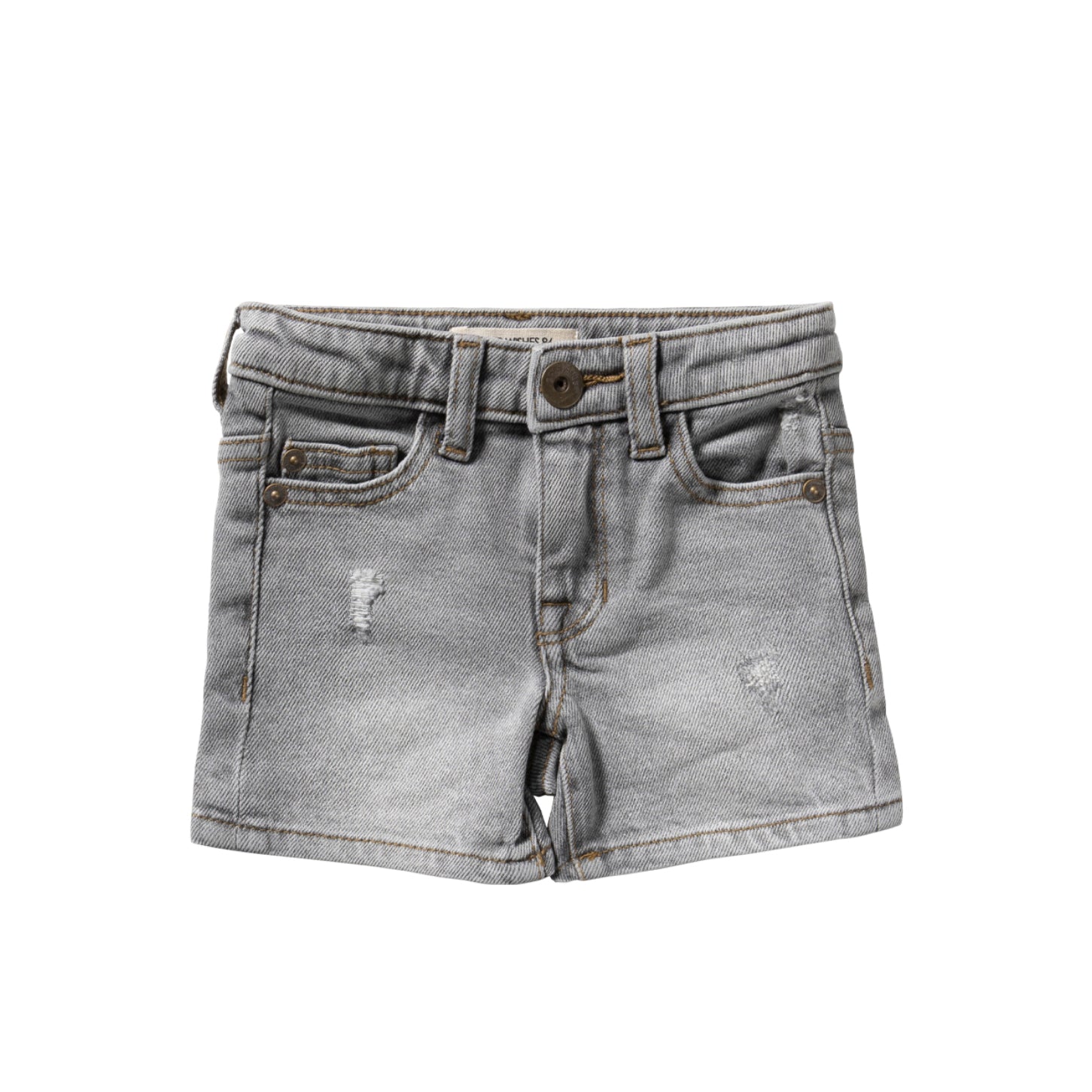 Deze korte jongens jeans is de perfecte aanvulling op de garderobe van u kindje deze zomer. De grijze verwassen kleur en slijtplekjes zorgen voor een stoere look en unieke uitstraling en maken het gemakkelijk met van alles te combineren. De korte broek is beschikbaar in de maten 80 t/m 140 en is gemaakt van 99% denim geweven katoen en 1% elastaan. De broek is gemakkelijk strakker te verstellen aan de binnenzijde met elastiek en knoopjes. Stijl deze stoere korte broek met de Palms Oversized Tee of de Structure Stripe Loose Shirt en maak de outfit compleet!