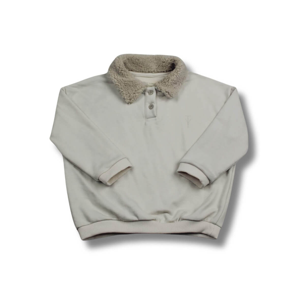 Warme sweater van 100% biologisch katoen in heerlijk warme sweat kwaliteit. Met deze sweater steelt uw kleintje de show! De sweater heeft een mooie creme kleur, lange mouwen met elastische banden een de uiteinde van de mouwen en onderzijde van de sweater. Verder is de stof aan de binnenkant geborsteld voor een extra zachte feel wat het extra comfortabel maakt. Het teddy kraagje maakt de sweater net even wat luxer en houd de nek van uw kleintje ook nog eens warm en de knoopjes aan de voorzijde maakt het aan-en uitkleden gemakkelijk. Deze sweater is door de neutrale kleur makkelijk met vrijwel alles te combineren en leuk voor zowel jongens als meisjes maar wordt natuurlijk het allerleukst gecombineerd met de andere toffe items uit de "Beary Cute" Collectie van Two You Label.