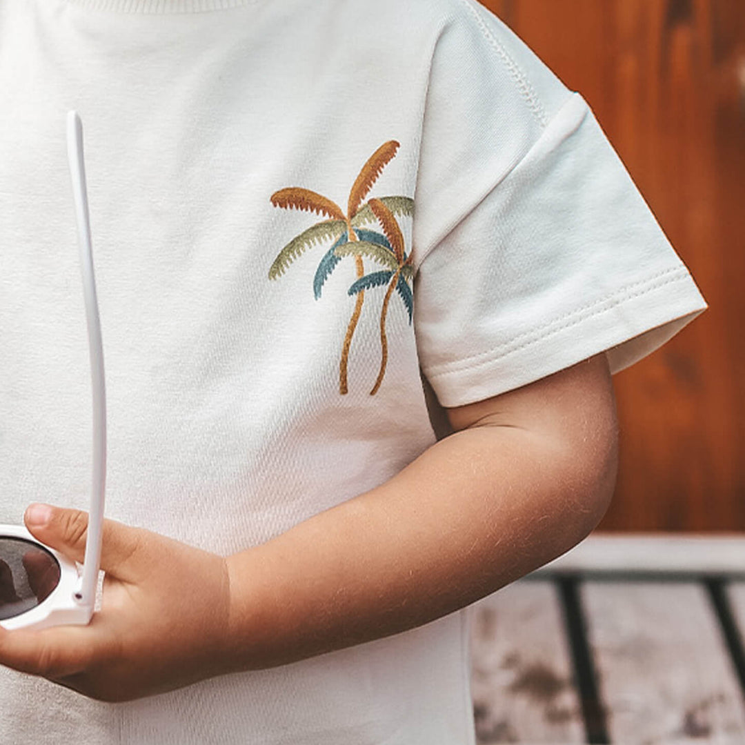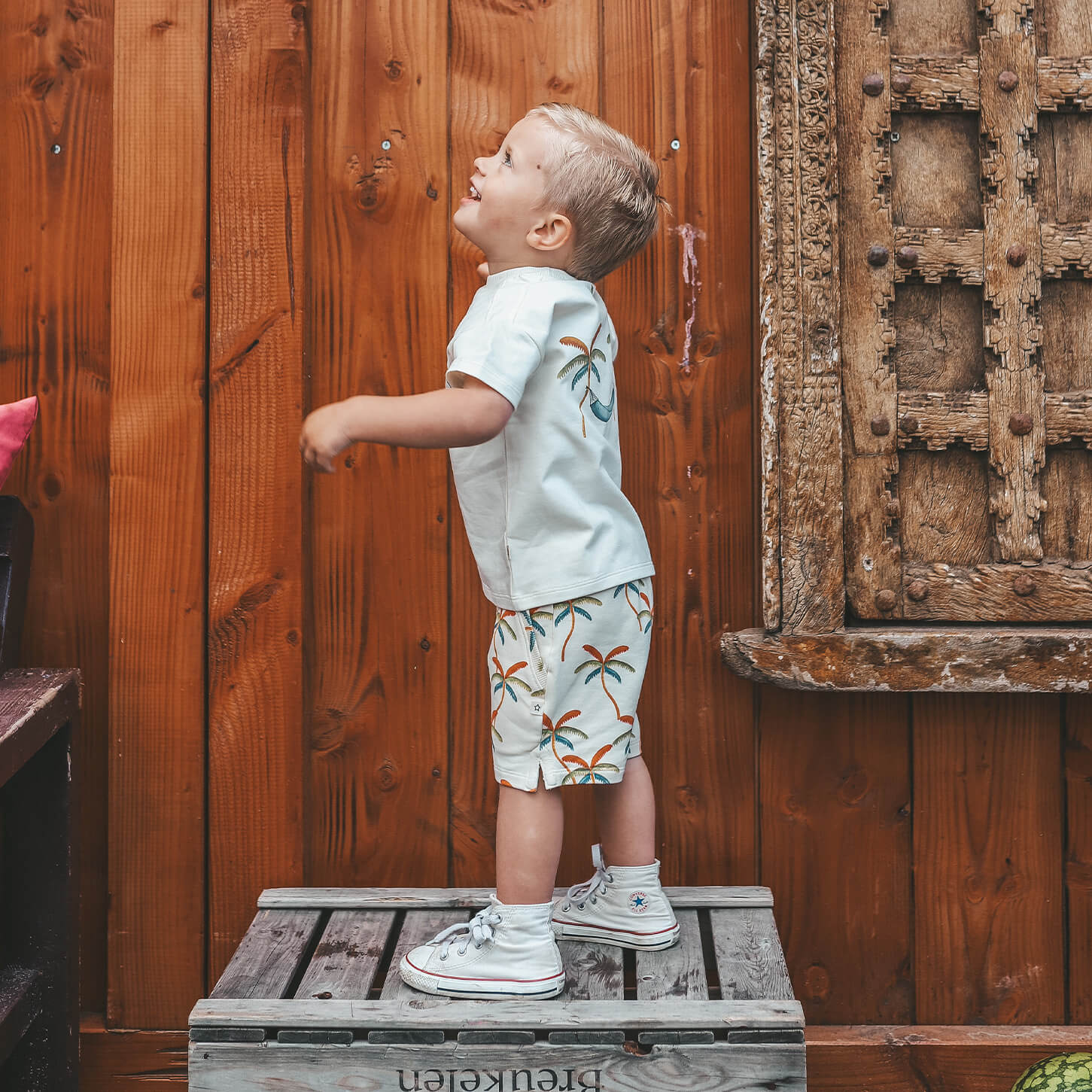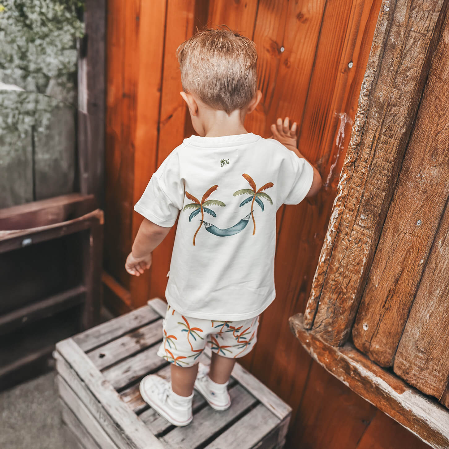 Heerlijk relaxen op het strand in een hangmat deze zomer met de stoere Hammock Boxy Tee van Your Wishes! Gemaakt van heerlijk zacht en stretchend Single Jersey katoen met elastaan zorgt dit shirt voor de meest comfortabele fit. Het shirt heeft een boxy model wat het een loose fit look geeft. Verder heeft dit stoere shirtje korte mouwen, een off white als basis kleur met op de achterzijde een opdruk van twee palmbomen en een hangmat en op de borst een kleine opdruk van twee palmboompjes. Stijl dit shirt met de Rio Tree Shorts of de Solid Cargo Shorts en maak de outfit compleet.