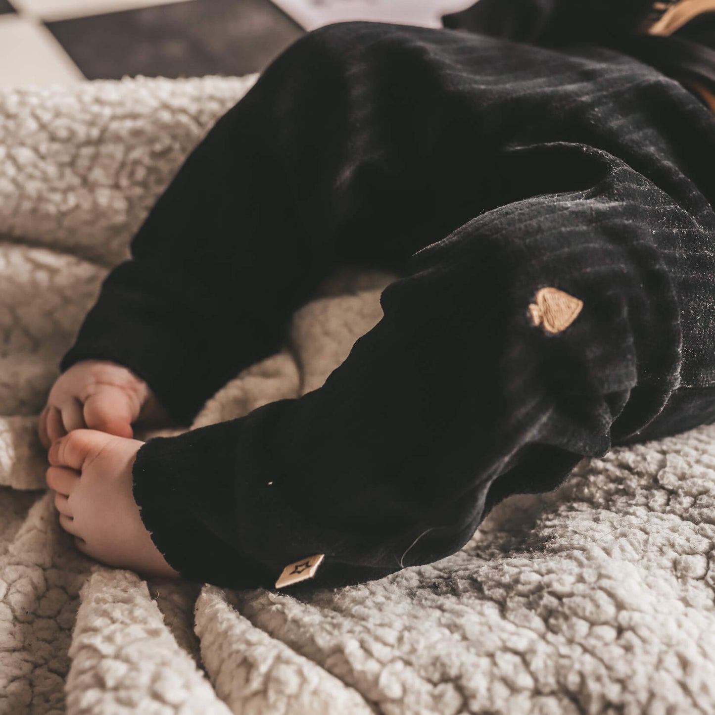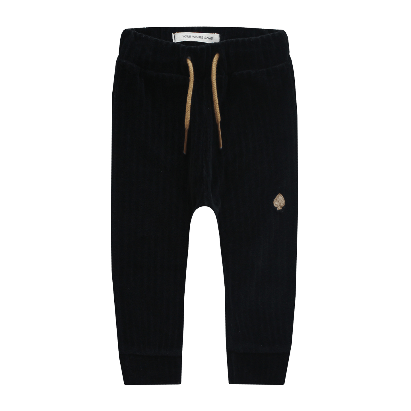 Jogging pants made of wonderfully soft velvet fabric with a coarse rib and beautiful embroidered detail on one of the legs.