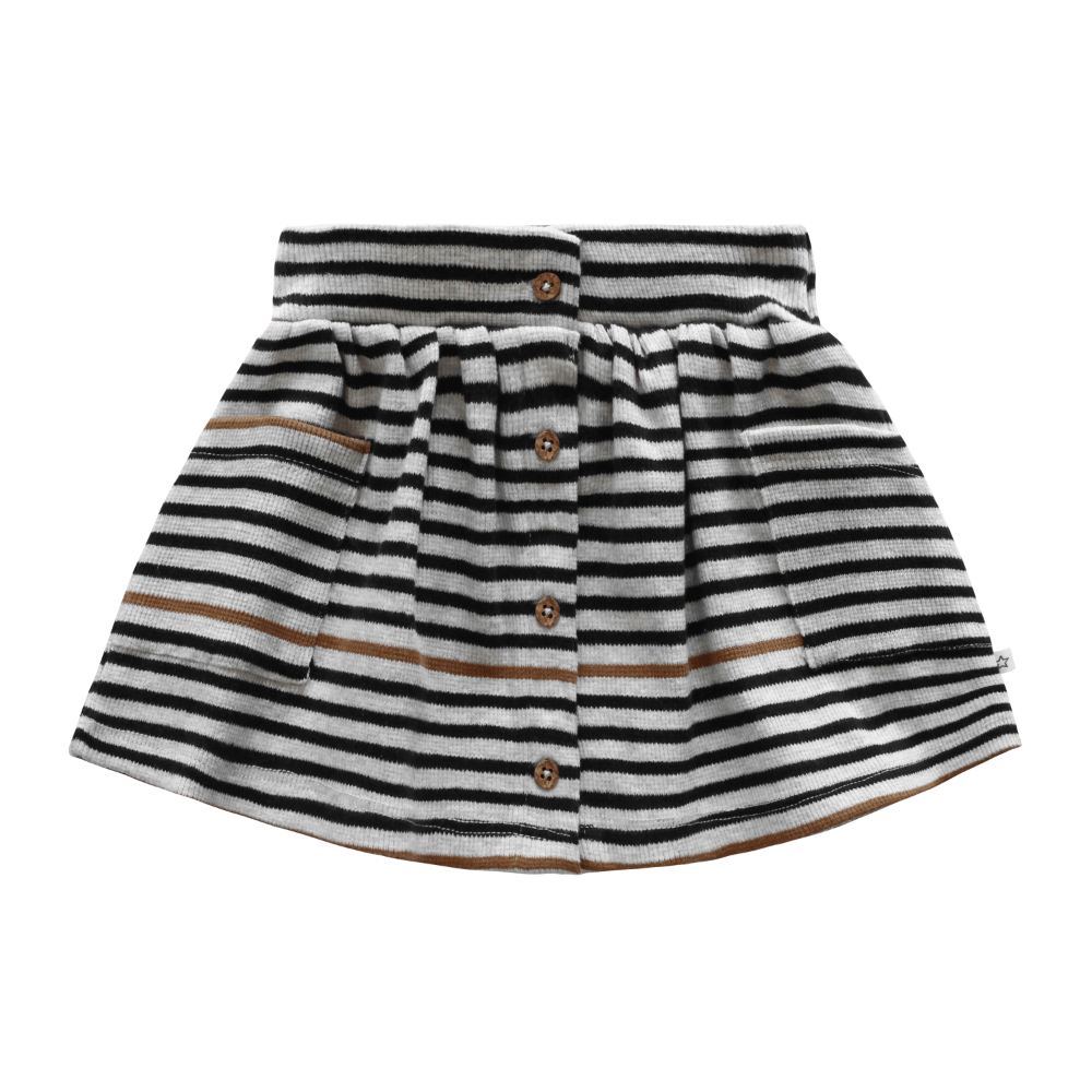 Ribbed quality skirt with elastic band around the hips, buttons on the front and classic striped print.