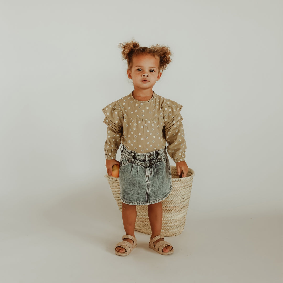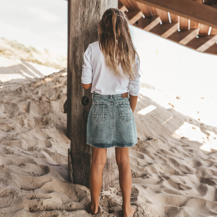 De Jolene spijkerrok is een ideaal item om alle seizoenen door te dragen en is verkrijgbaar in maat 80 tot 140. De stof van de rok is aan de voorkant een beetje geplooid en door de lichte wassing is de Jolene rok eindeloos te combineren! De spijkerrok sluit door middel van een rits met een haak en oogsluiting. Er zit een elastiek verwerkt in de tailleband van de Jolene spijkerrok, om ervoor te zorgen dat deze aangesnoerd kan worden om de rok daarmee beter op het lichaam van het kindje aan te laten sluiten. Zo weet je zeker dat de rok de juiste pasvorm heeft en je kindje er stijlvol bijloopt! Tot slot is de spijkerrok nog afgewerkt met twee steekvakken aan de zijkant en ook twee kontzakken. De Jolene spijkerrok is niet voor niets een bestseller uit de Your Wishes collectie!