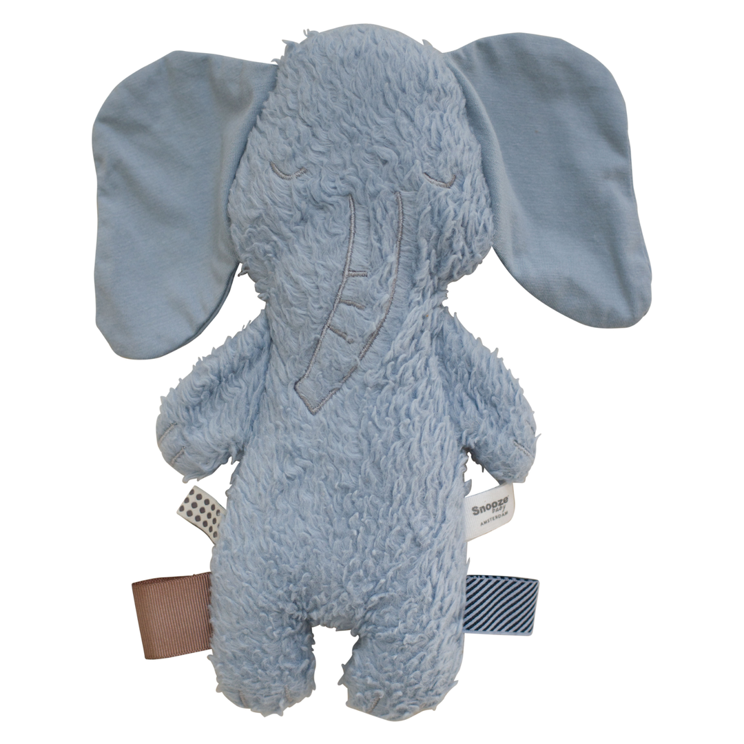 Altijd al een een blauw olifantje gewild dat onvoorwaarwaardelijk naar u kleintje luistert (kan ook niet anders met die grote oren van hem) en bij wie u kindje altijd kunt knuffelen? Hier is ie: Olly, ultra zacht, rustig en met labeltjes om lekker aan te friemelen en uw kindje te kalmeren.