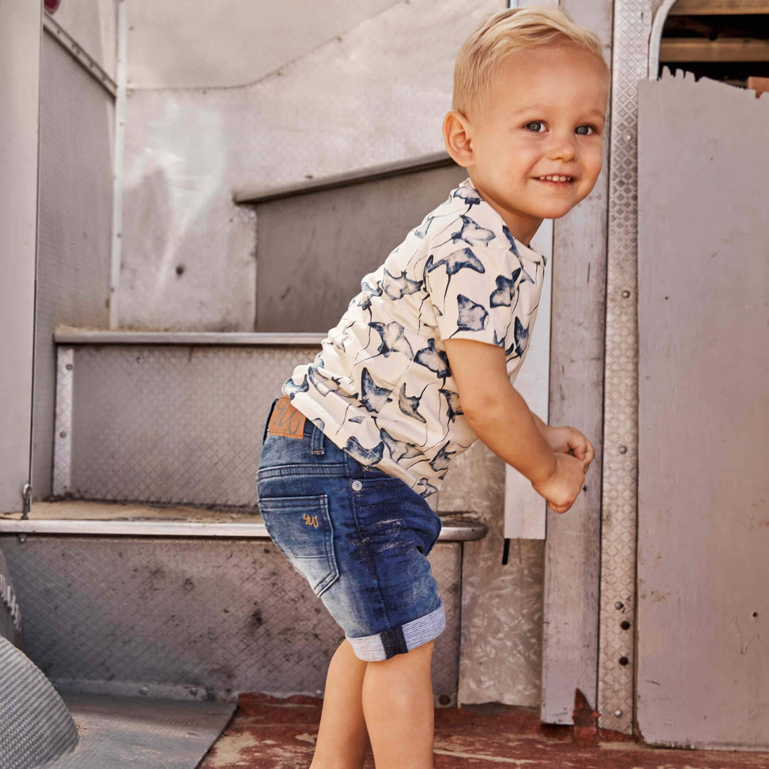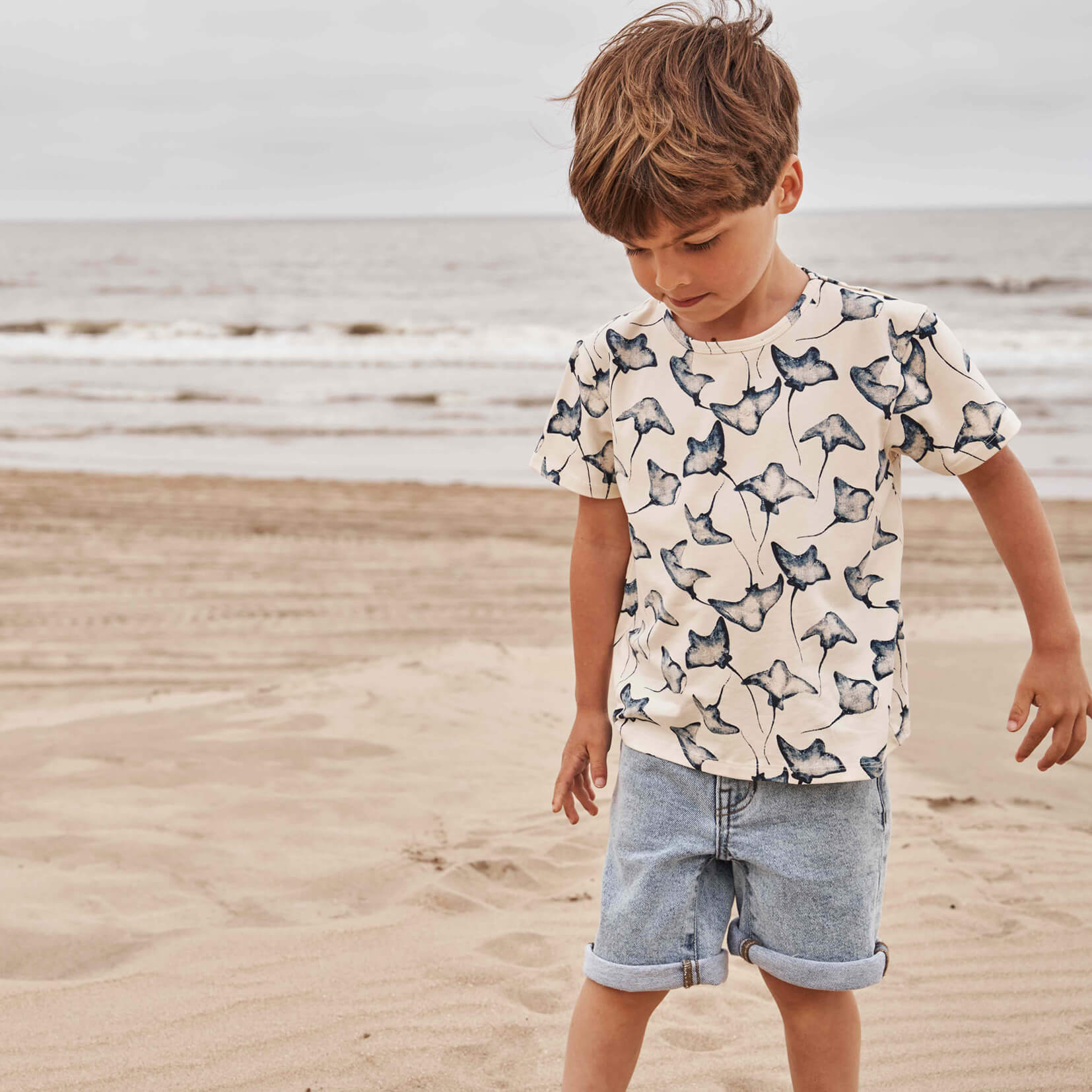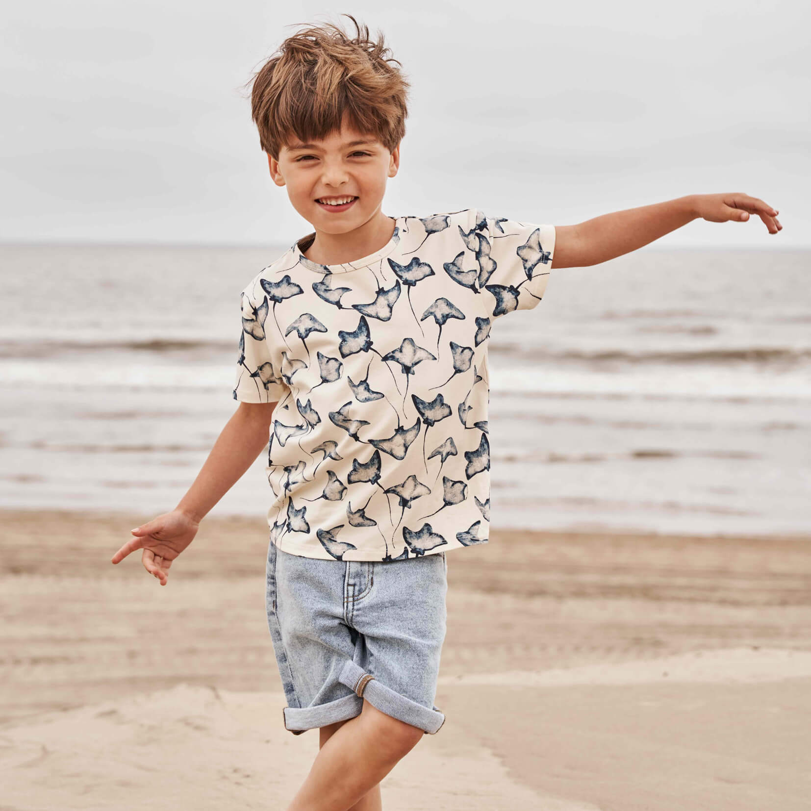 Supple shortsleeve T-shirt with a playful stingray print.