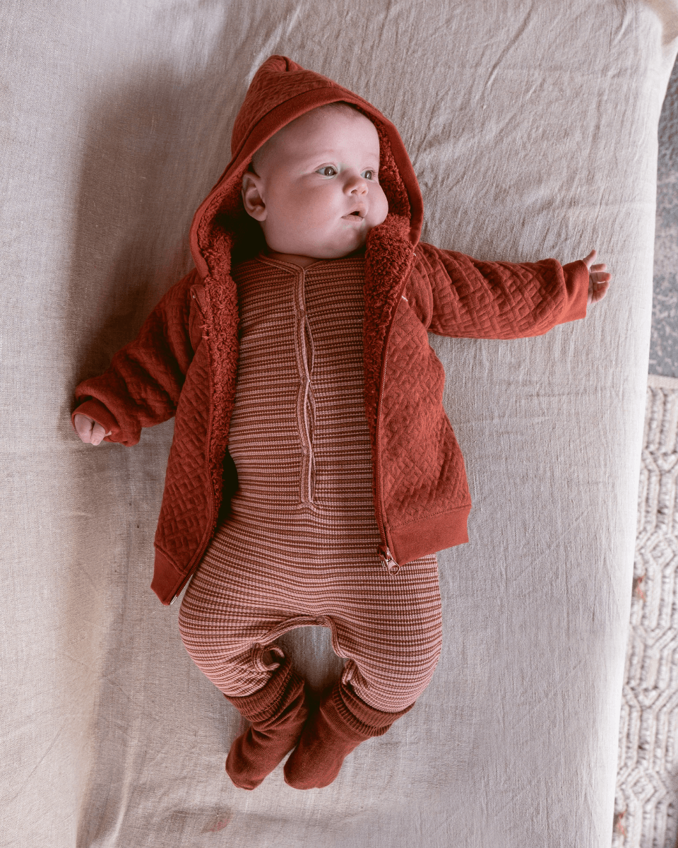 Babydoll made of thick ribbed fabric with a beautiful classic stripe print. The suit has press studs at the front and bottom to make dressing and changing easier. The thick fabric and beautiful color make this suit perfect for autumn and winter.