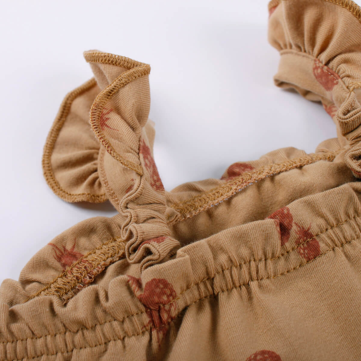 Prachtige strandbody met de fijnste details. De body is zonder drukknopen omdat hij elastisch is in de opening aan de bovenkant. Aan de onderkant is genoeg ruimte gecreëerd voor een luier en een betere pasvorm. Elastische banden bij beenopening en aan de bovenkant bij de bandjes.