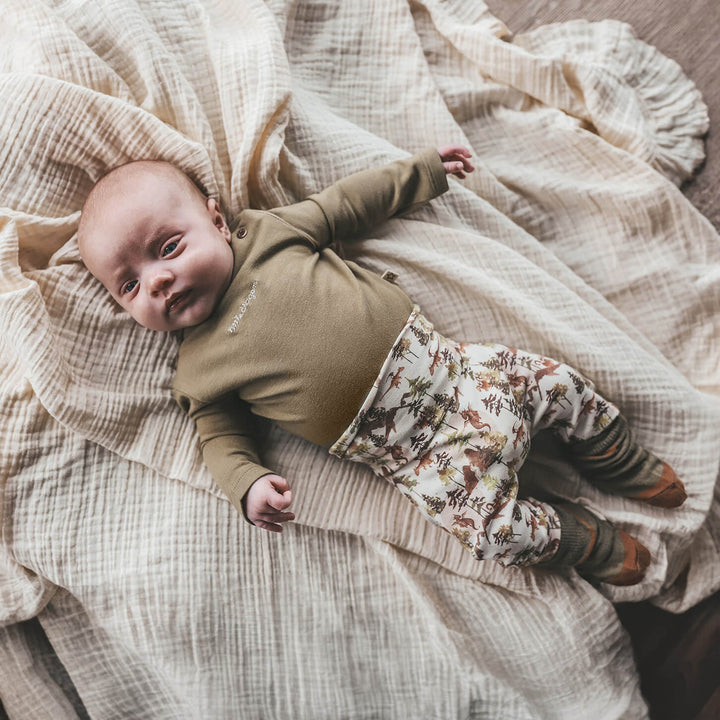 Deze stoere broek van Your Wishes staat uw kleine draak geweldig en is verkrijgbaar vanaf maat 50 tot en met 74. Het broekje met drakenprint sluit goed rond de beentjes en billetjes van uw kindje en houdt daarmee goed de warmte vast. De tailleband is extra hoog voor draagcomfort, maar beschermd ook eventueel het navelstompje mocht uw kindje die nog hebben. Vind u de tailleband van het broekje te hoog? Dan kunt u deze makkelijk omvouwen. Het broekje is gemaakt van een combinatie van katoen en modal en neemt hierdoor tot wel 50% meer vocht op dan andere stoffen. Zweten en plakkerigheid is dus verleden tijd als uw kleintje dit broekje draagt! Combineer de Dragon Fitted Pants met de groene Solid Fitted Romper en uw kleintje ligt er weer stijlvol en comfortabel bij.