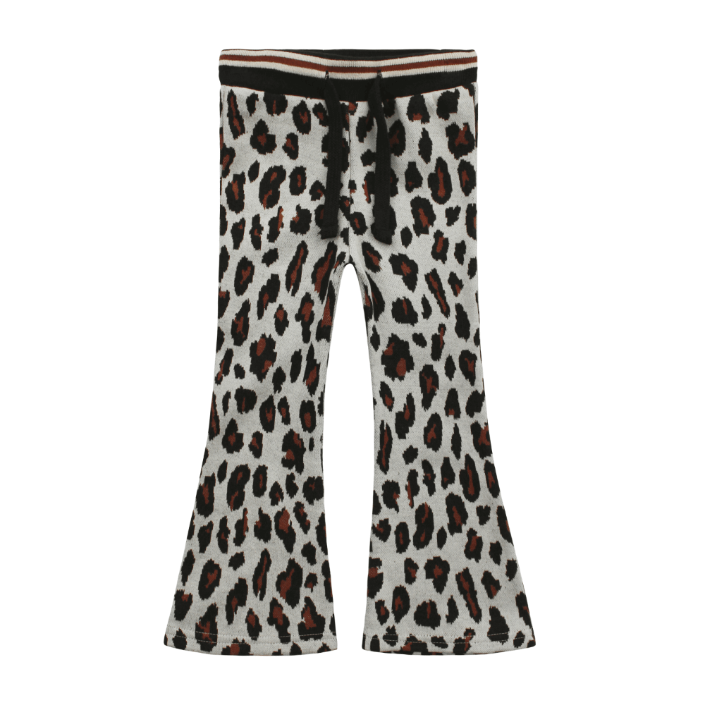 Flared legging van zacht geweven kwaliteit met knoopsluiting op de heup omvang te verstellen en stoere leopard print.