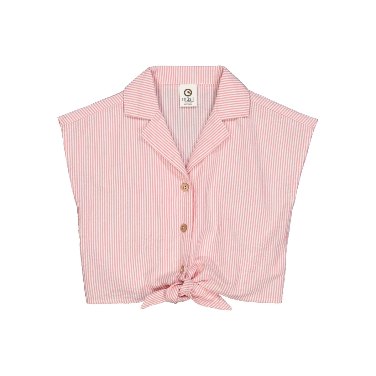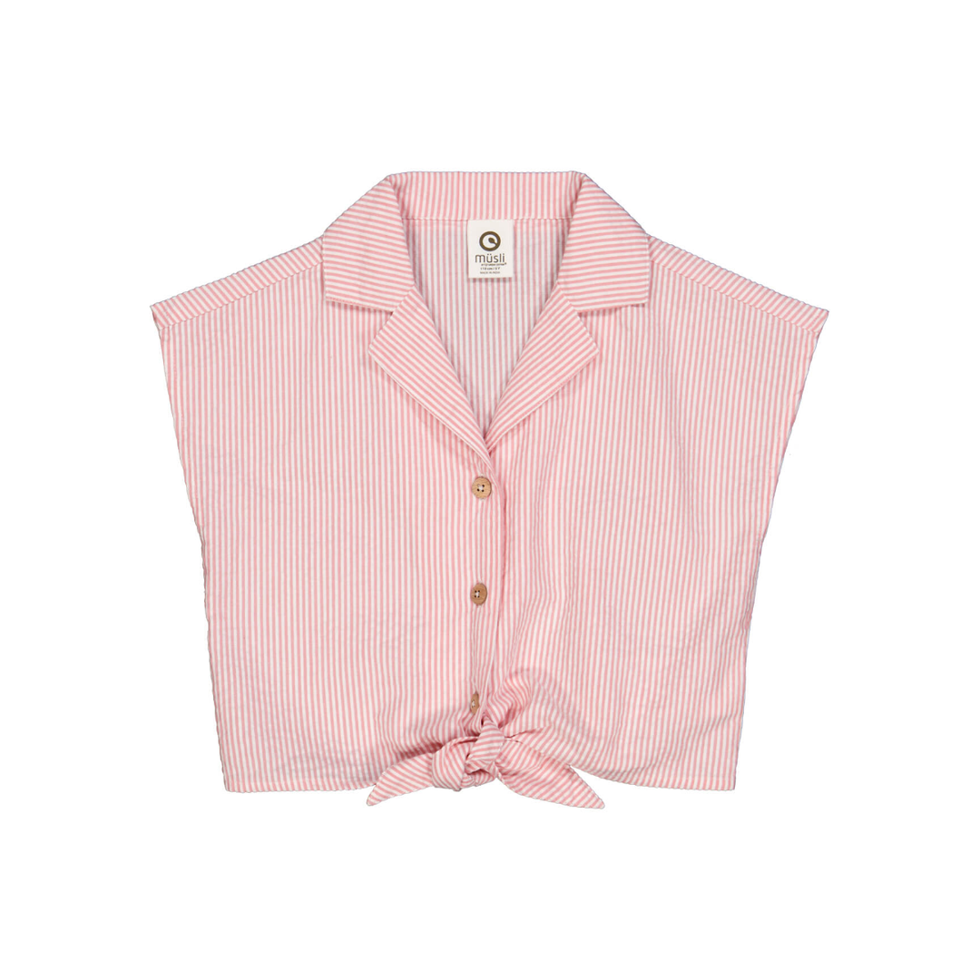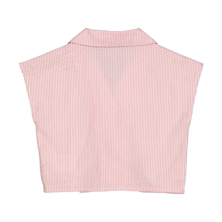 Leuk en vrouwelijk crop-shirt met korte mouwen en strikbandjes aan de onderkant. Het shirt heeft de mooiste roze strepen en een decoratieve kraag. Het overhemd gaat open met knopen en strikbanden aan de voorkant, de knopen zijn gemaakt van sheeshamhout. Het shirt heeft een korte pasvorm en staat super leuk bij zowel een rok als een broek. Gemaakt van 100% katoen geweven seersucker.