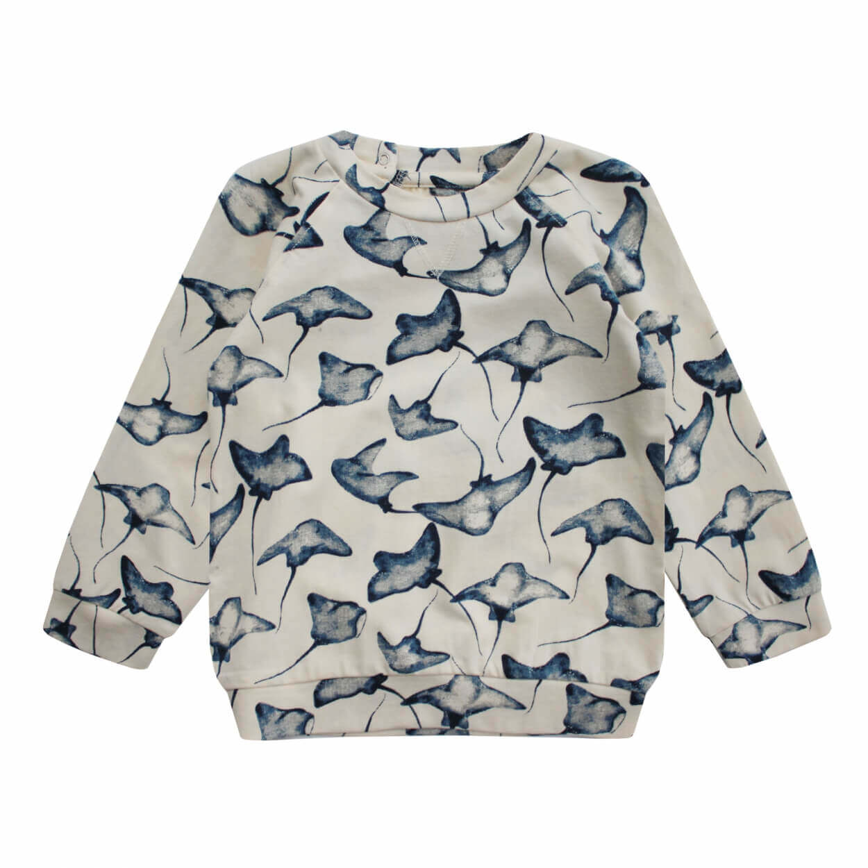 Deze sweater is voorzien van een met de handgeschilderde aquarel print. Door het blauw in deze print is de sweater heel goed te combineren met denim.