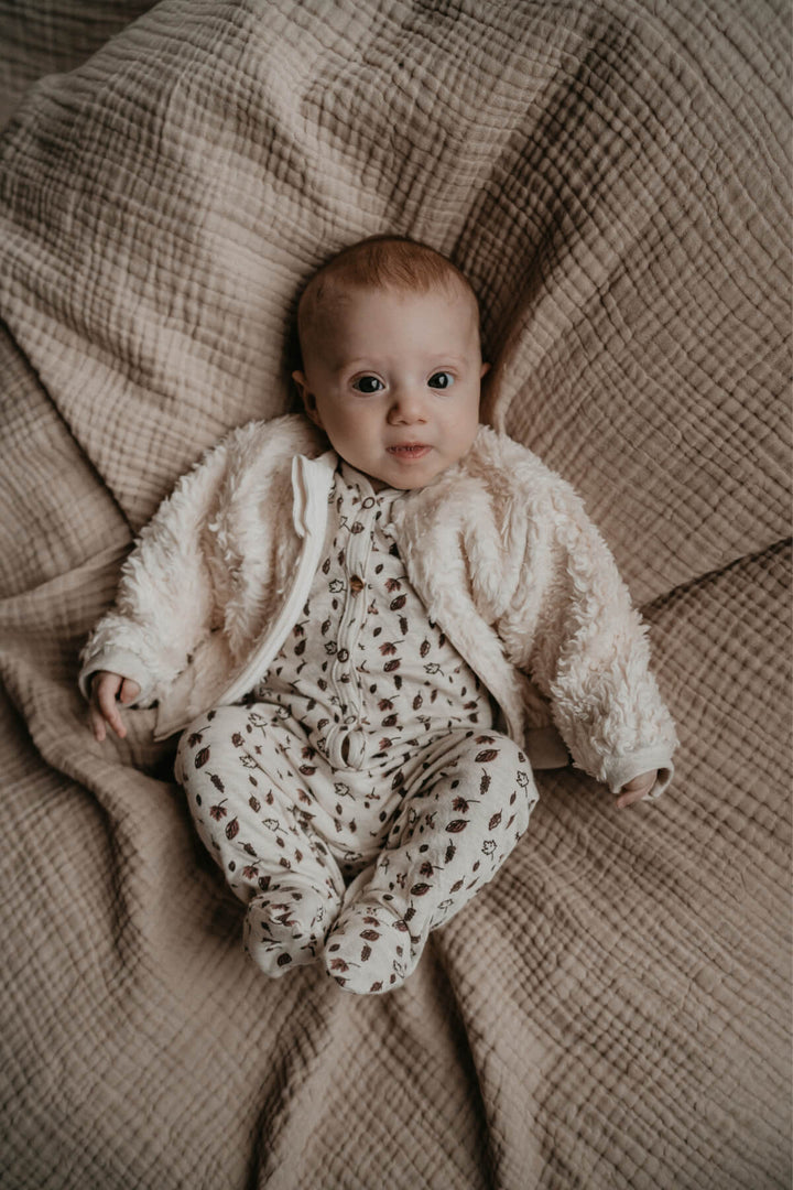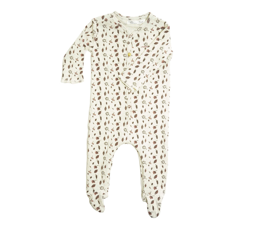 Boxpakje met voetjes van heerlijk zachte en warm biologisch katoen, daardoor perfect voor newborns. Het pakje heeft drukknoopjes aan de voor en onderkant om het aankleden en verschonen makkelijker te maken. De mooie herfs/winter bladeren print maakt dit pakje perfect voor de herfst en winter.